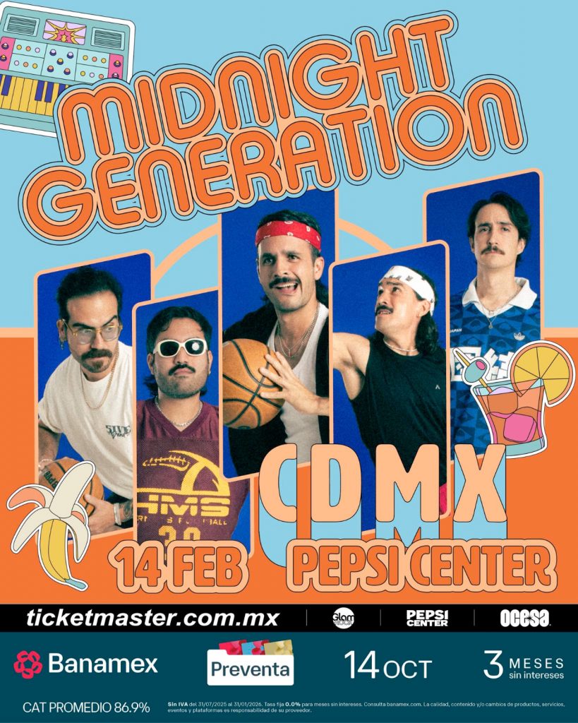 El quinteto originario de Chihuahua Midnight Generation estarán listos para poner a todos a bailar en el WTC Pepsi Center. Porque este 2026 viene fuerte con los concierto. Y uno de los mas esperados por el publico del centro del país es sin duda esta banda.